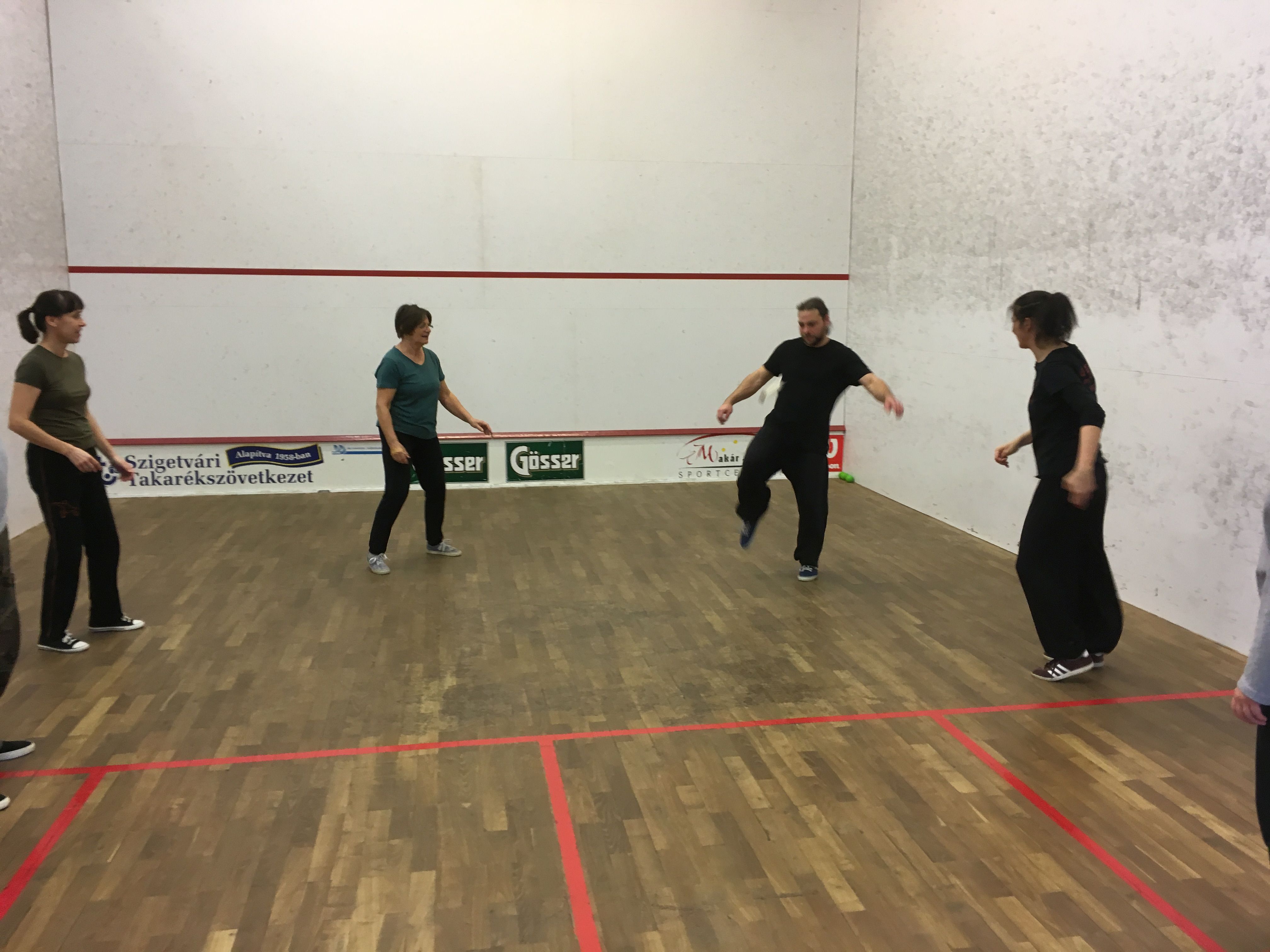 Pár perccel hamarabb sikerült befejezni az edzést, mint hogy ránk oltották volna a villanyt a teremben, a fiatalok ezt gyorsan ki is használták egy kis láb teniszre 🙂