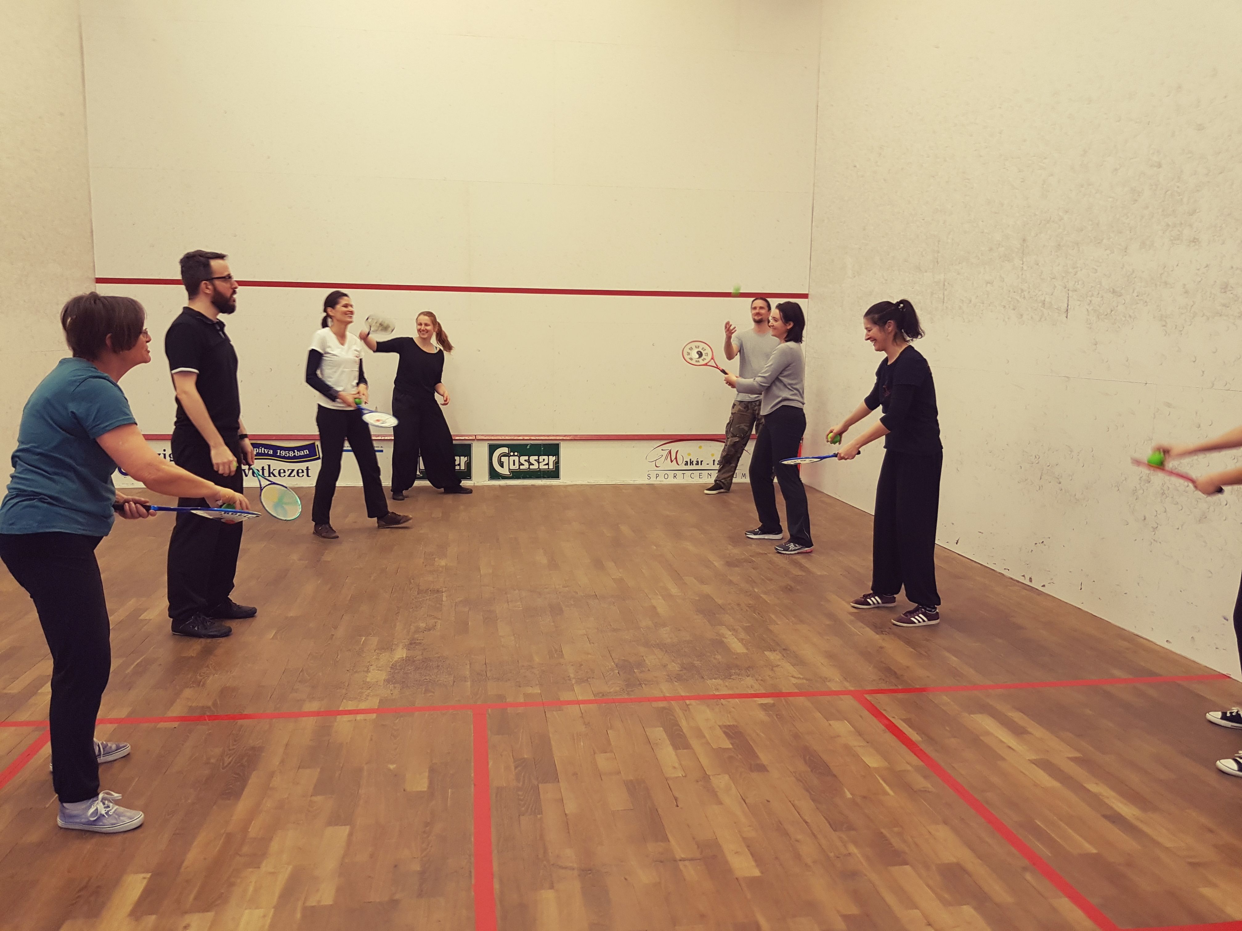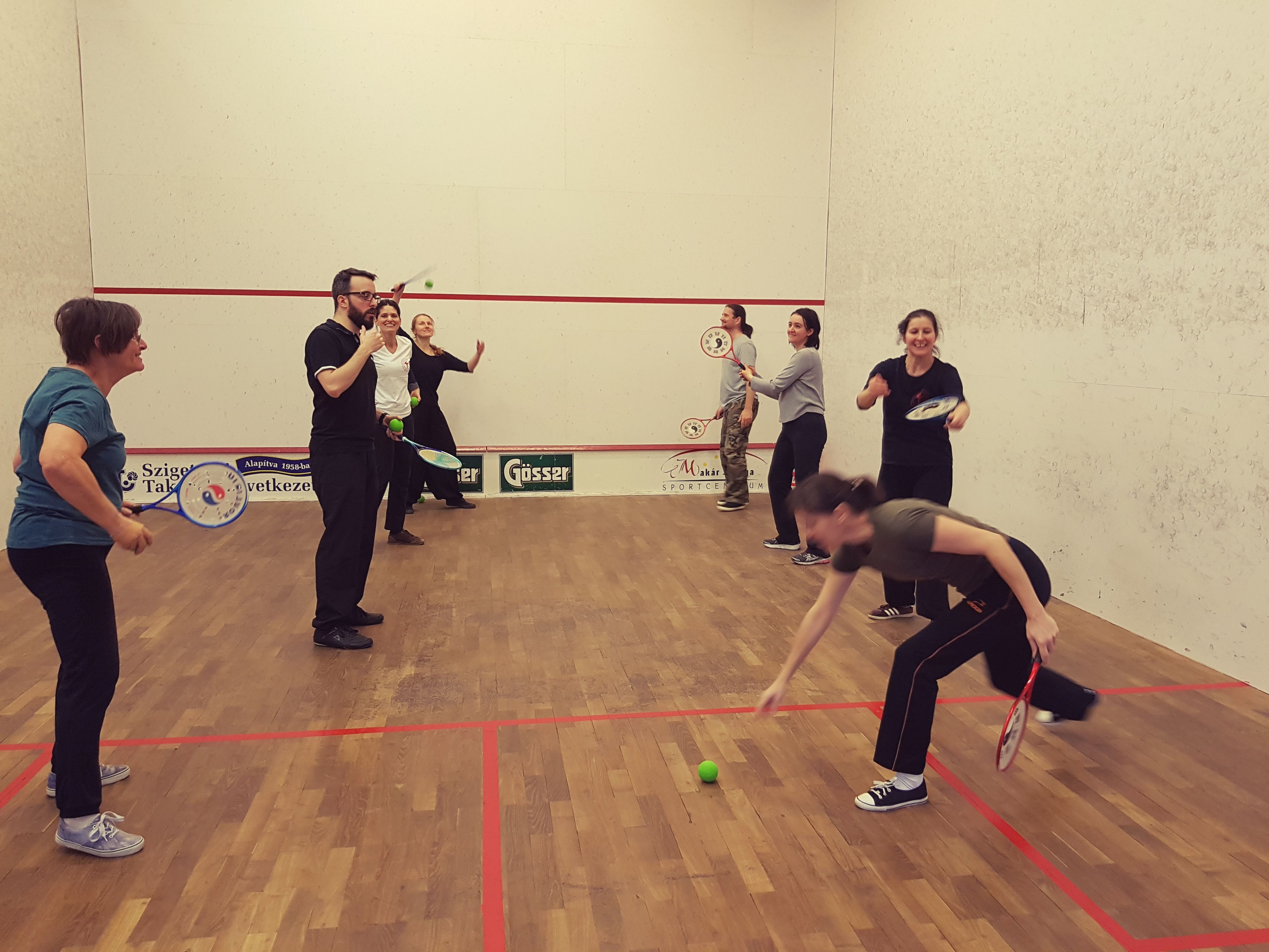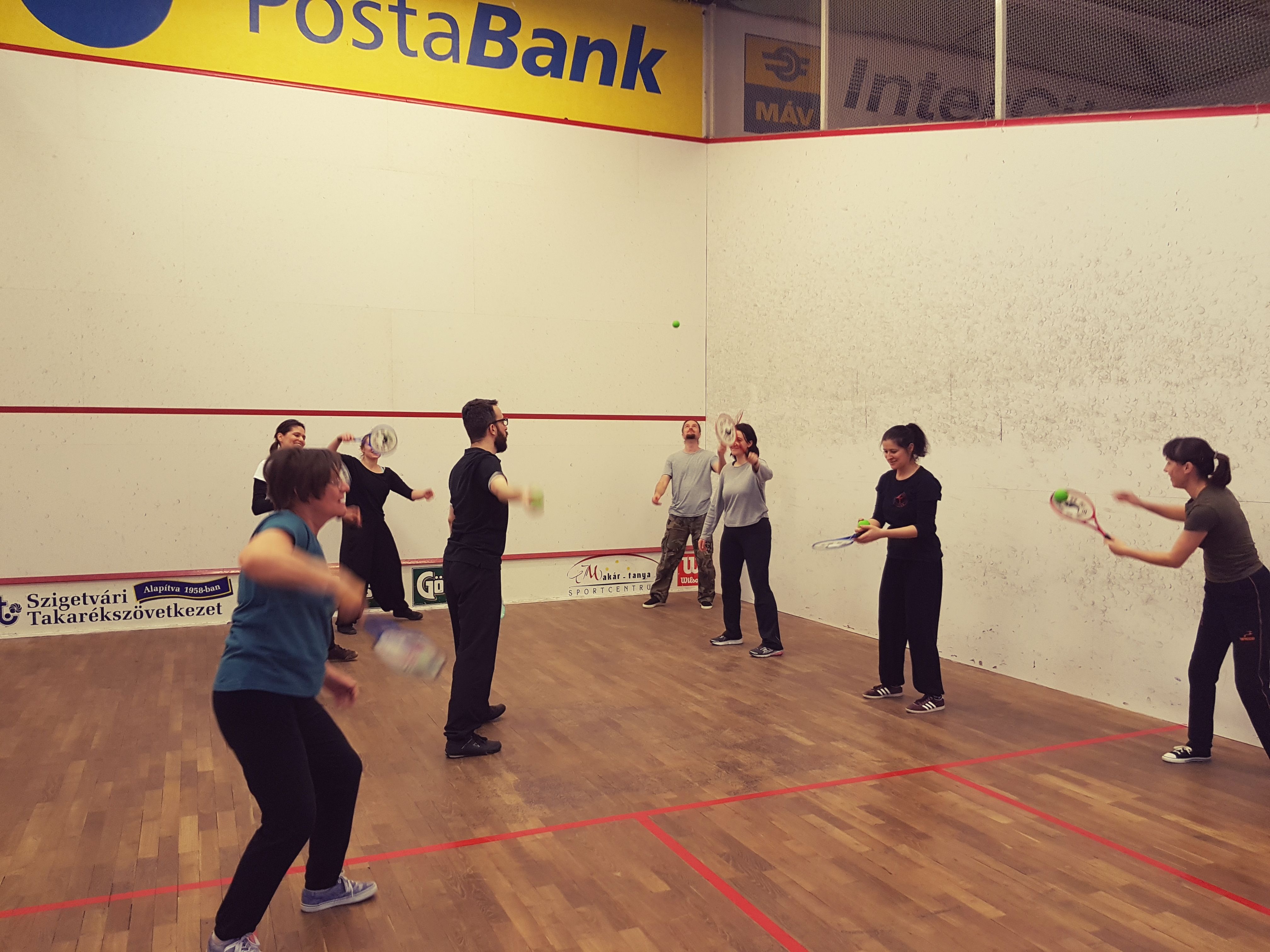 Pár perccel hamarabb sikerült befejezni az edzést, mint hogy ránk oltották volna a villanyt a teremben, a fiatalok ezt gyorsan ki is használták egy kis láb teniszre 🙂